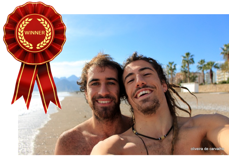 Our team of judges reviewed all of the TOP 10 selfies and decided that the upper selfie collects everything each happy traveler should have/be: Happiness, cameradery, devotion, love + includes a beautiful tourist background.